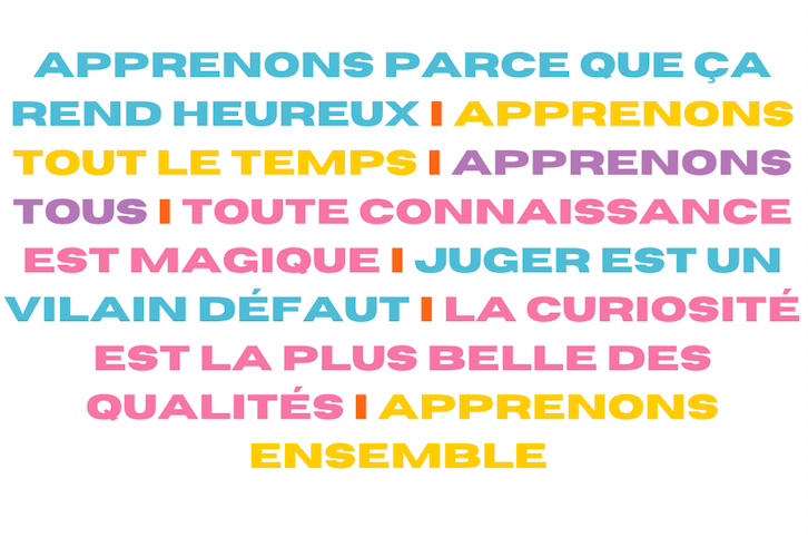 Choisissons ensemble d’apprendre ensemble - de façon horizontale plutôt que verticale, en échangeant, partageant, discutant, plutôt qu’en imposant notre point de vue ou notre expérience.